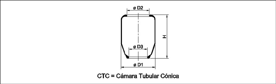 Descripción: Este elemento es un fuelle propiamente dicho, de contorno circular. La línea estándar de NeumaCarg tiene cámaras de 1, 2 o 3 convoluciones o lóbulos. La utilización de uno u otro depende del diseño de la suspensión que utilizan las diferentes marcas de vehículos y la capacidad de carga de los mismos.